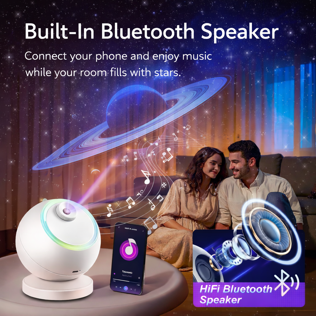 Simply connect your phone via Bluetooth and enjoy your favorite music, relaxing playlists, or podcasts while the stars fill your room.